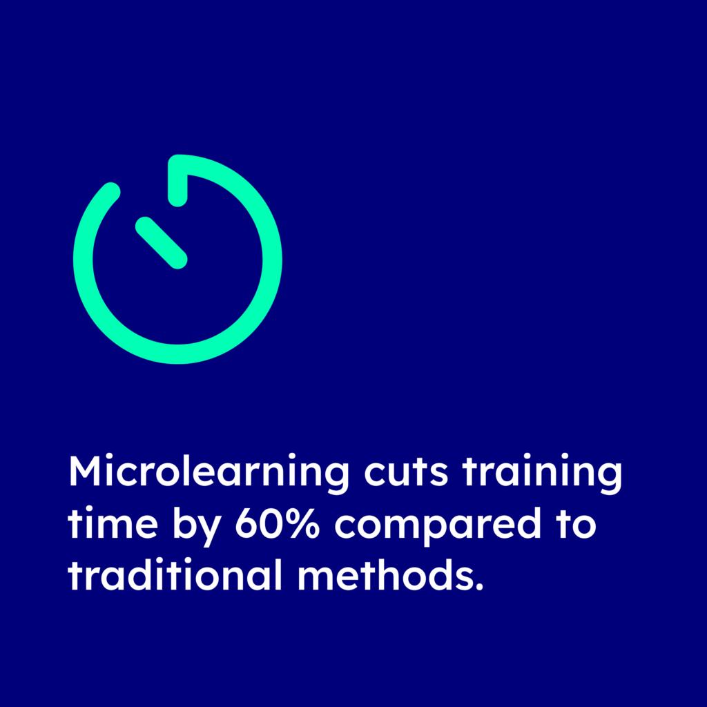 - Just-in-time learning: MicroLearns provide information precisely when it’s needed, supporting real-time accessibility, especially in industries with rapidly changing compliance requirements.